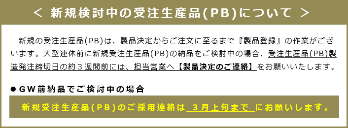 ゴールデンウィークに伴う各種ご案内 ①GW に伴う休業日と受注生産品(PB)ご注文締切日のご案内(2026年2月作成)