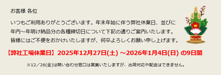 ②年末年始に伴う休業日とご注文の締め時間・出荷に関するご案内(2025年10月作成)