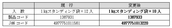 入数、製品コード、外装ラベルJANコードが変更となります。